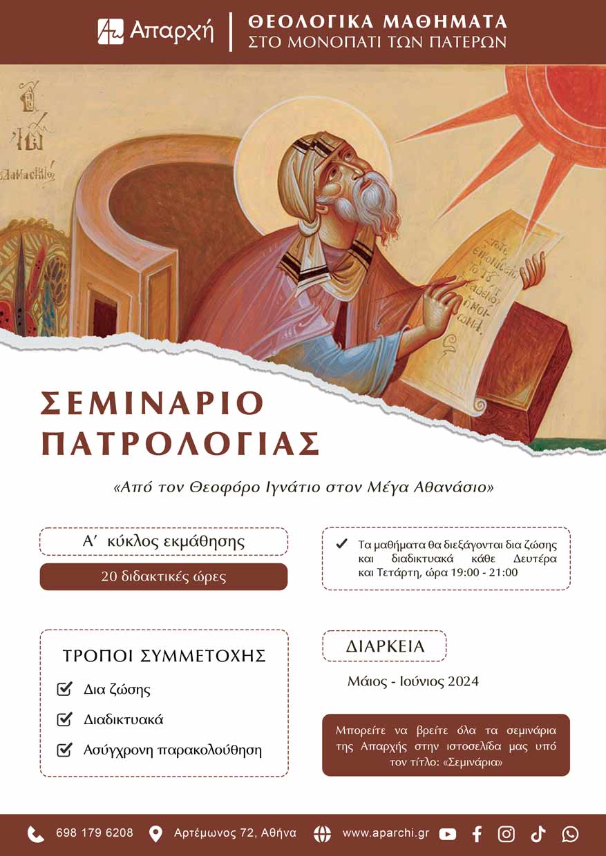 Μπορείτε να παρακολουθήσετε το Σεμινάριο Θεολογίας αλλά και να βρείτε ειδικές προσφορές στον παρακάτω σύνδεσμο: https://aparchi.gr/theologika-seminaria/